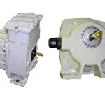 The displacement detector (model: YVGC-500W) is a sensor to detect displacement of machine axes and has a synchro transmitter and limit switches to detect both ends built-in. The detector measures the amount of displacement based on the rotation angle indicated by the synchro transmitter and outputs it as a change in AC voltage. Thus, signal transmission is not affected by noise.